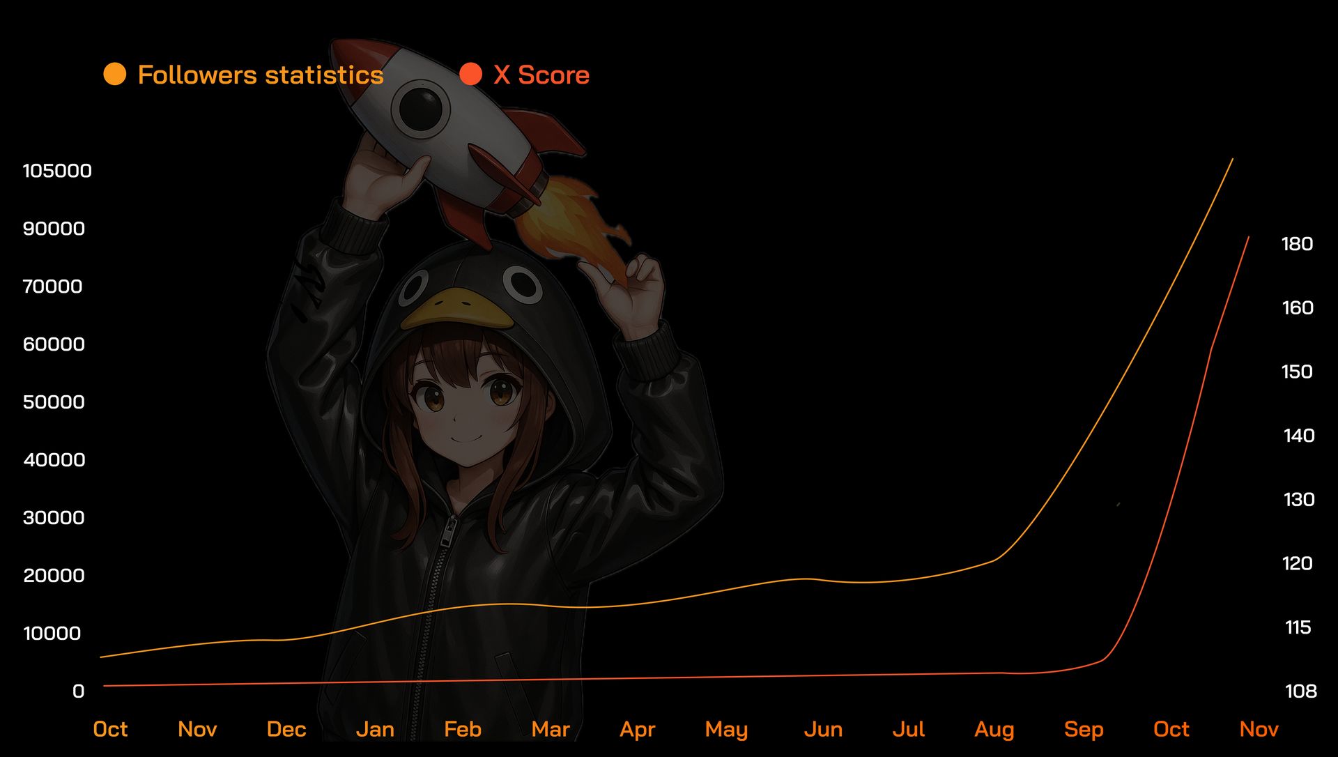 Followers count: 4.5K → 102K